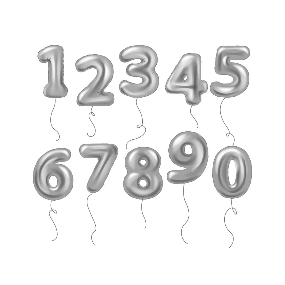 بالون أرقام بالحجم الكبير من القصدير معبأ بغاز الهيليوم باللون الفضي